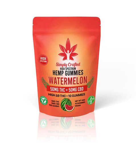 If you’re ready for a smooth CBD and THC experience, dip your hand into a bag full of THC + CBD High Spectrum Gummies. Our THC + CBD High Spectrum Gummies are for those that want a high-functioning edible that releases stress while increasing focus. Each gummy is ready to take you higher with 5mg of CBD and 5mg of THC. Each THC + CBD High Spectrum Gummies pack contains 50mg of THC and 50mg of CBD. Choose from three different delicious flavors: Blackberry, Peace, and Watermelon. You won’t want to stop at the first bite, and you’ll always find that a little goes a long way once you indulge in our THC + CBD High Spectrum Gummies!