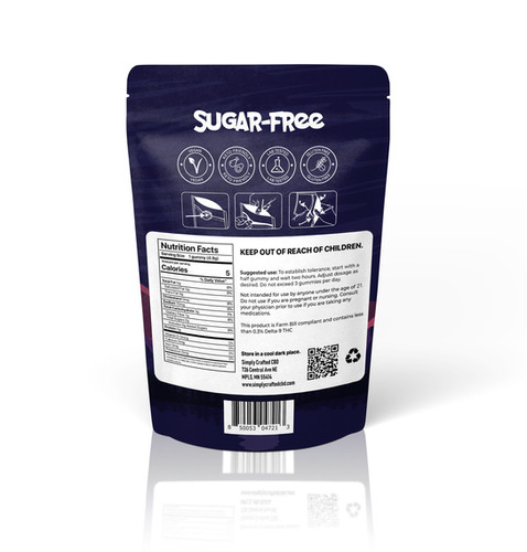 As the night envelops the sky, let the serene notes of blueberry accompanied by the calming essence of CBN and THC in Simply Crafted’s 3:1 Deep Sleep Blueberry Gummies guide you into a peaceful slumber. The tender, sugar-free gummies, each containing 15mg of CBN and 5mg of THC, are crafted in the heartland of Minnesota, encapsulating the tranquility of the serene nights. With a total of 150mg CBN and 50mg THC per package, these gummies are not merely a pathway to restful nights but a ritual for unwinding. The Indica effects are a gentle whisper to the chaos, easing you into a state of relaxation and euphoria as the night’s embrace beckons. Gluten-free, vegan-friendly, keto-friendly, and lab-tested, these gummies are a soft lullaby for your taste buds, ensuring your dietary choices are respected even as you drift into dreams. The hemp-derived cannabinoids, compliant with Minnesota’s regulations, are balanced to maximize relaxation, making your evenings a cherished haven of restfulness. With Simply Crafted, each night is not just a reprieve but a journey into tranquility. Ingredients: Fiber Syrup, Allulose, Water, Pectin, Citric Acid, Natural Flavor, Natural Color.